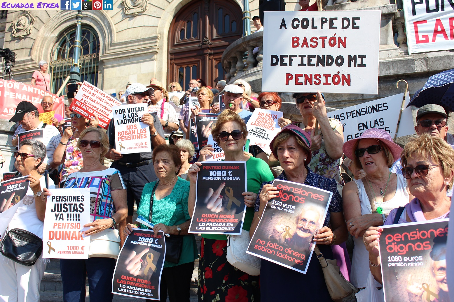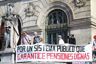 El Movimiento de Pensionistas de Bizkaia formado por personas jubiladas, viudas, divorciadas y pensionistas, superan los 8 meses de movilizaciones frente al Ayuntamiento de Bilbao y avisan que seguirán saliendo a las calles lunes tras lunes, con sol o con lluvia hasta conseguir lo que les corresponde legítimamente por derecho, y por el futuro de las juventud, unas pensiones dignas y su tabla de reivindicaciones: