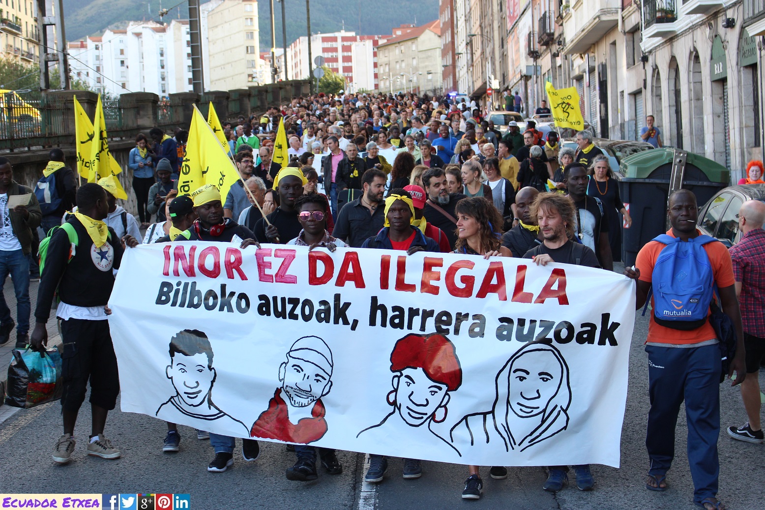 Cientos de personas se han movilizado desde la Plaza Dr.Fleming en Bilbao hasta Karmela Bizirik en Santutxu para exigir soluciones integrales y mayores recursos a las instituciones como el Ayuntamiento de Bilbao, la Diputación Foral de Bizkaia y el Gobierno Vasco, quienes se niegan a acoger dignamente a personas migrantes y refugiadas que están llegando a la ciudad.
