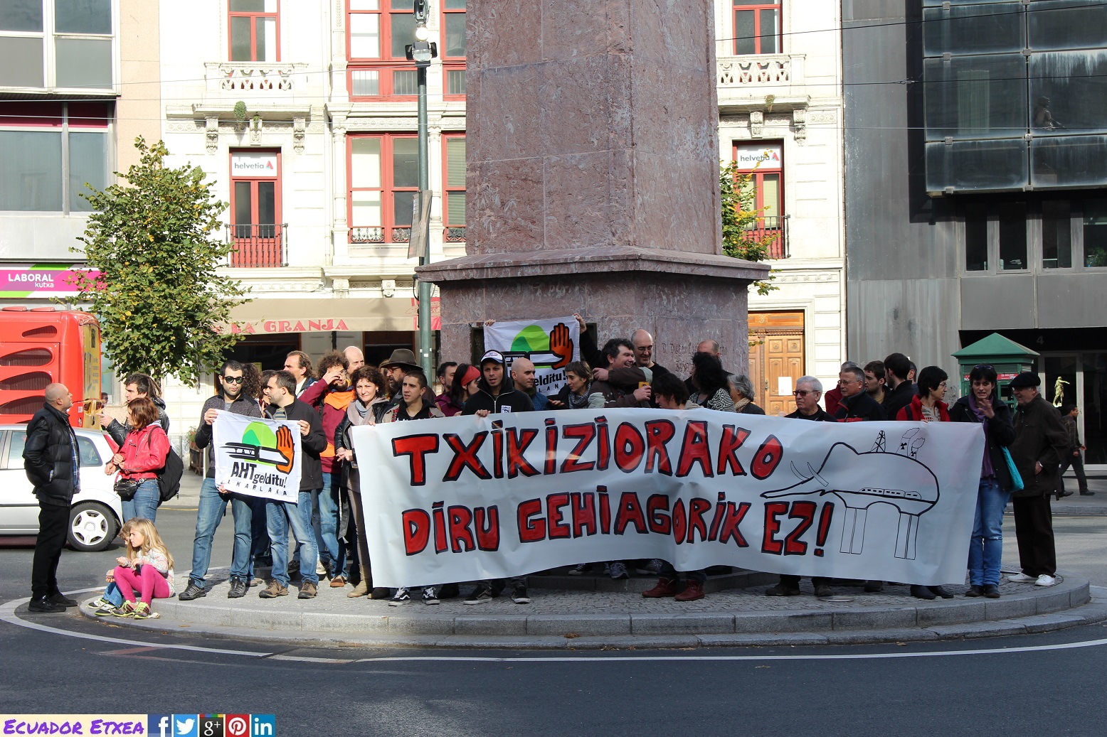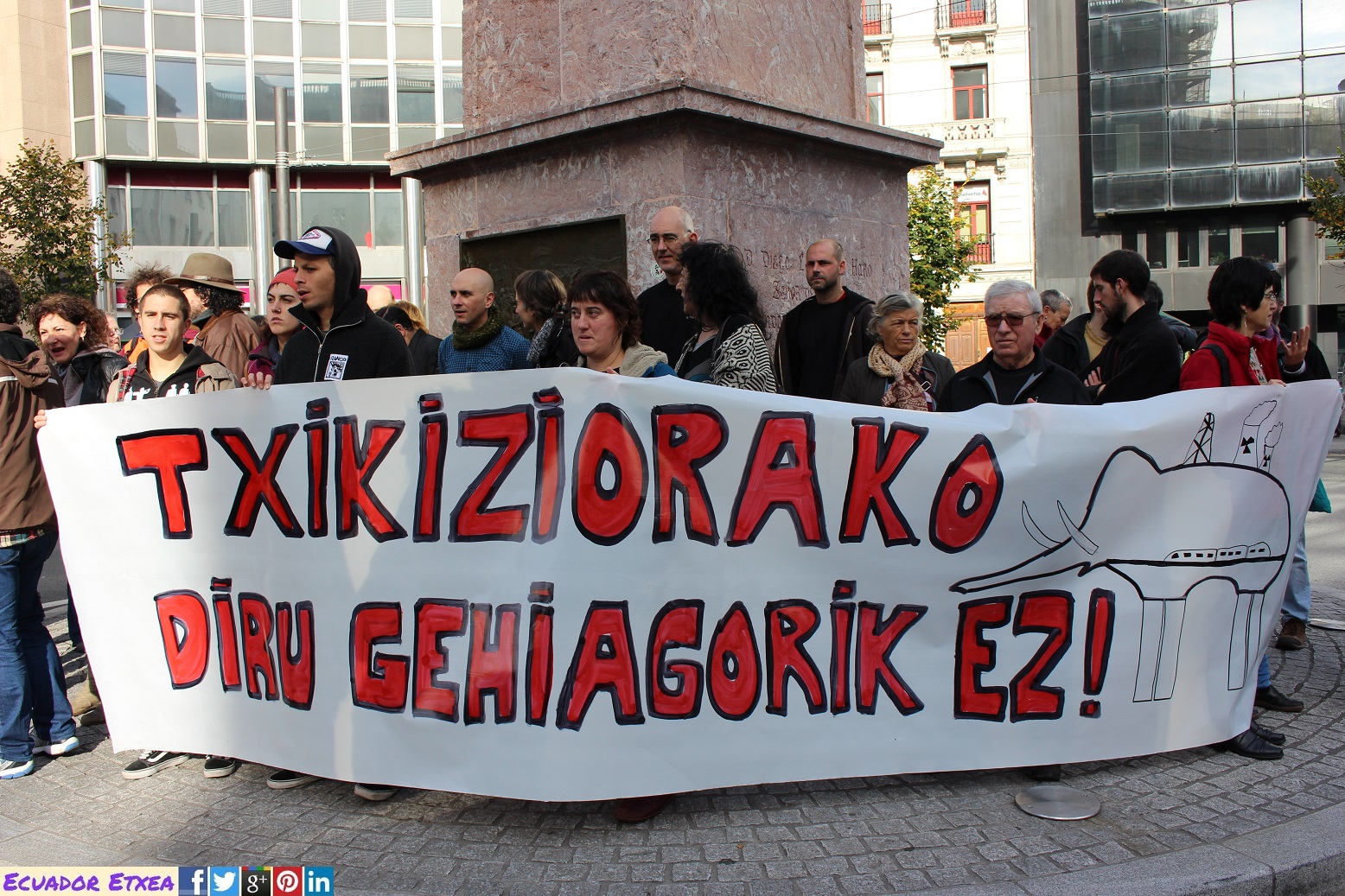 Exigimos un cambio de política, y que se tomen medidas de manera inmediata, tales como la paralización de las obras del Tren de Alta Velocidad y la producción en la planta de COKE, el cierre de Garoña, el abandono definitivo del FRACKING, y la no construcción de la incineradora de Zubieta.