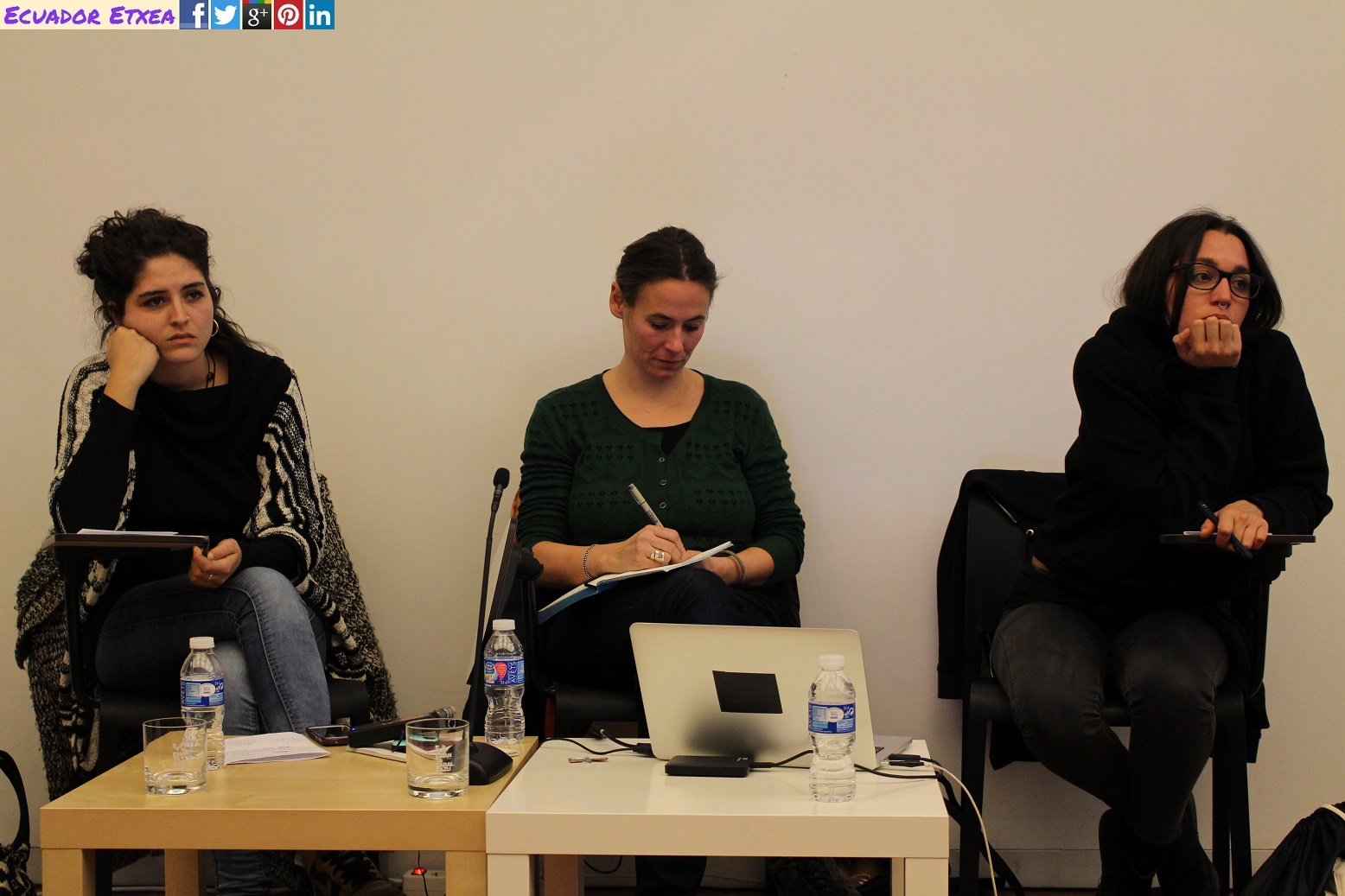 Cada una de las mesas está compuesta por tres invitadas: una persona perteneciente al campo de los procesos artísticos, una persona relacionada con la investigación o la práctica concreta del eje a tratar, y una alumna de la UPV/EHU que actuará como moderadora de la mesa.