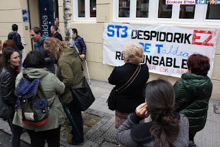 Cuando se cumplen las 9 semanas de huelga indefinida, la plantilla de trabajadoras y trabajadores de ST3 Elkartea han realizado una concentración frente a la sede de EDE Taldea en Bilbao con el respaldo de los sindicatos ESK, CNT, ELA y LAB, con el objetivo de “defender sus puestos de trabajo ante un grupo laboral que da beneficios y dice estar en quiebra para despedirlas a coste 0”. Denuncian que llevan años viviendo un auténtico calvario por culpa de la dirección de EDE Taldea que ya desde el año 2014 quería liquidarlos, a pesar de ser un grupo laboral que da beneficios. Y en esta ocasión se han plantado una vez más.
