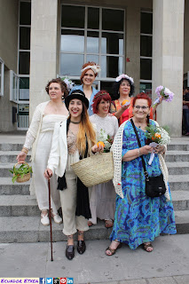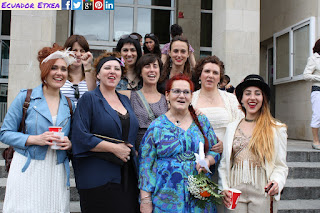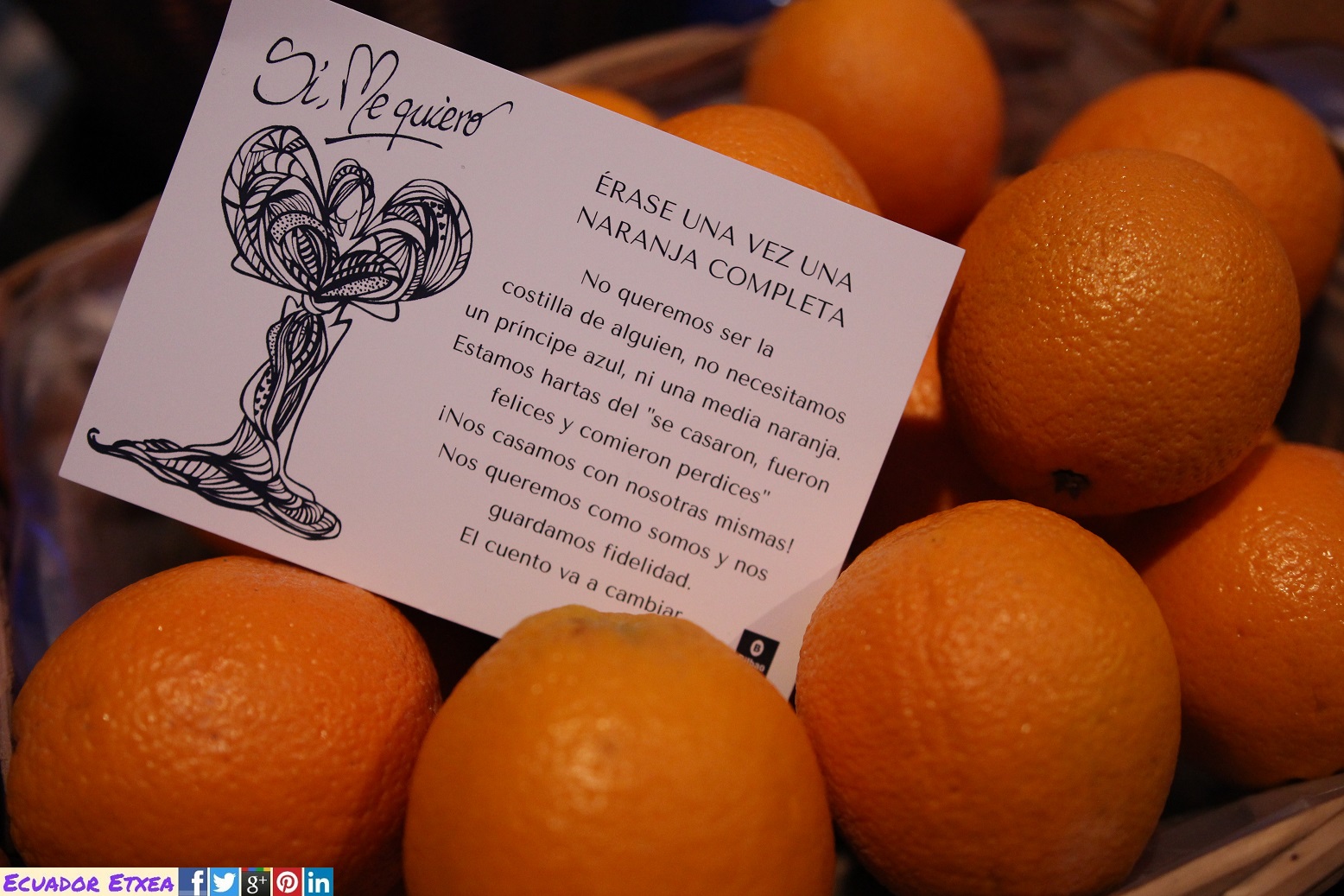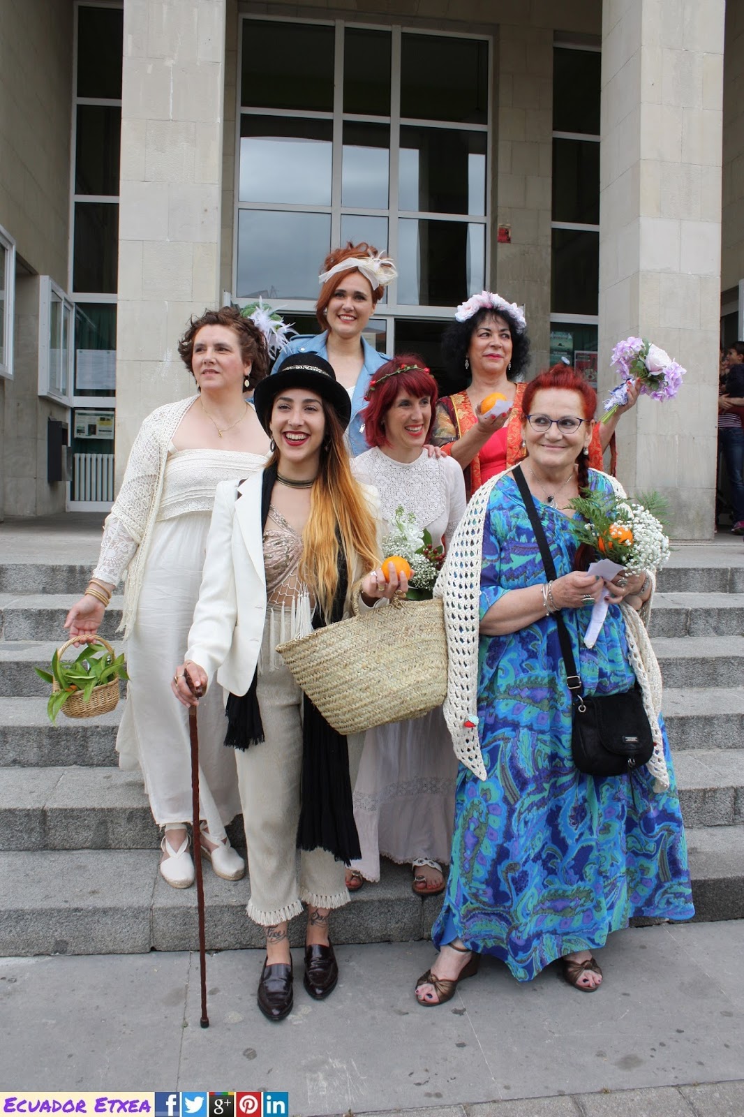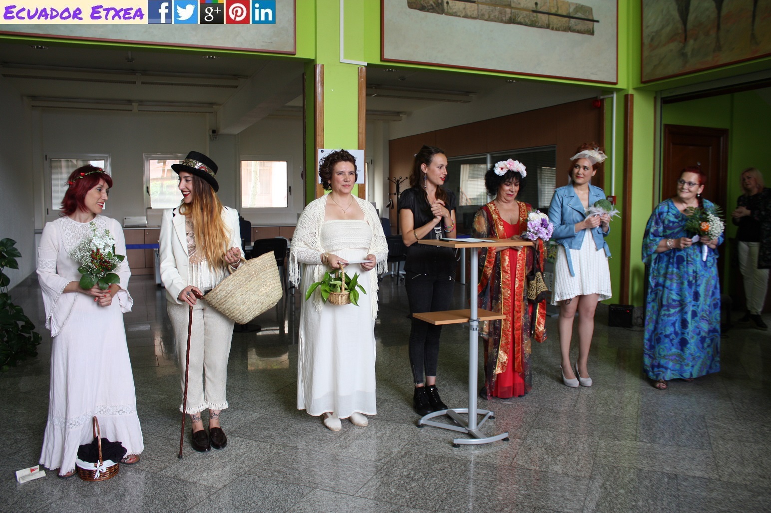 Catorce mujeres han celebrado este viernes 8 de junio en el Bilborock (Bilbao) una boda consigo mismas y se han comprometido a cuidarse, amarse y respetarse, todos los días de su vida. La ceremonia que ha sido oficiada por Carmen Muñoz, concejala del Ayuntamiento de Bilbao, ha salido primero por kalejira recorriendo las calles de Bilbao la Vieja repartiendo naranjas entre los y las transeúntes contando que “no somos la media naranja de nadie, somos naranjas completas”. Para más tarde, dar inicio a la ceremonia dentro de Bilborock acompañadas por la magnífica voz de la soprano Miren de Miguel, mientras una por una, las novias han leído sus votos a cerca de a lo que se comprometen y a qué renuncian en esta nueva etapa de su nueva vida junto a ellas mismas.