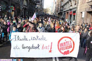 Dando continuidad a las huelgas y movilizaciones iniciadas el curso anterior y las convocadas entre septiembre y noviembre del presente, miles de trabajadoras y trabajadores de los distintos colectivos de la enseñanza pública de la CAPV han secundado la huelga y las movilizaciones de este martes 12 de diciembre convocadas por los sindicatos ELA, LAB, Steilas, UGT-Euskadi y CCOO-Euskadi, para reivindicar el fin de las políticas de recorte, la mejora de las condiciones laborales y una educación pública que tenga como meta el desarrollo integral de las personas y de la sociedad.