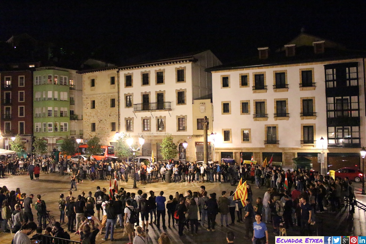 La mañana de este jueves 12 de octubre, día de lucha y resistencia de los pueblos indígenas, pero que desde el Gobierno del Reino de España se celebran los más de 500 años de genocidio perpetrado durante la colonización de los pueblos latinoamericanos, cientos de personas se han dado cita en la céntrica plaza de Moyúa (Bilbao) para rodear pacíficamente la Subdelegación del Gobierno para mostrar su apoyo al pueblo catalán tras el proceso de referéndum de independencia mientras desde Madrid, el gobierno del Partido Popular con el apoyo de otros grupos parlamentarios como PSOE y Ciudadanos han decido dar un ultimátum al Govern de Catalunya con fecha límite para este lunes día 16 de octubre para que el President Carles Puigdemont aclaré si declaró o no la independencia, y de ser afirmativo, el estado español podría aplicar el artículo 155 de la constitución española restringiendo drásticamente la autonomía del pueblo catalán.