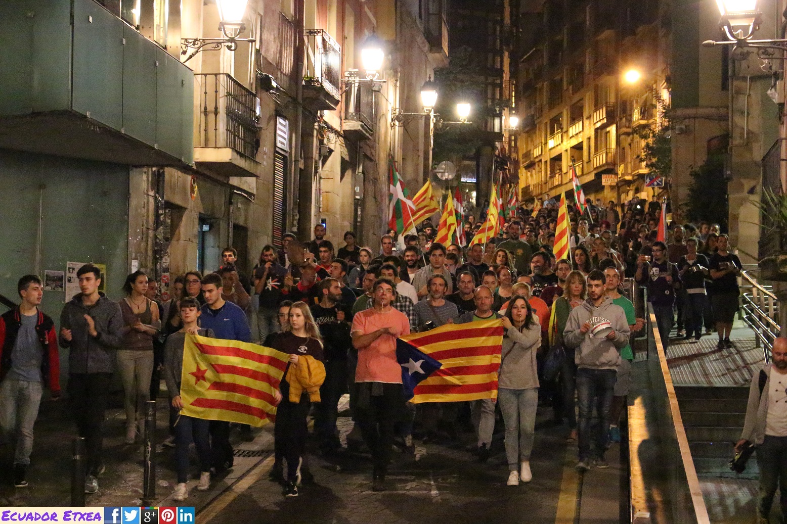 Pero, y mientras esperamos la declaración de independencia, para el pueblo de Euskal Herria esto ya no es solo una cuestión que afecta al pueblo de Catalunya. Si intentan coartar su libertad, tendrán que pasar por encima de Euskal Herria porque no estáis solas.