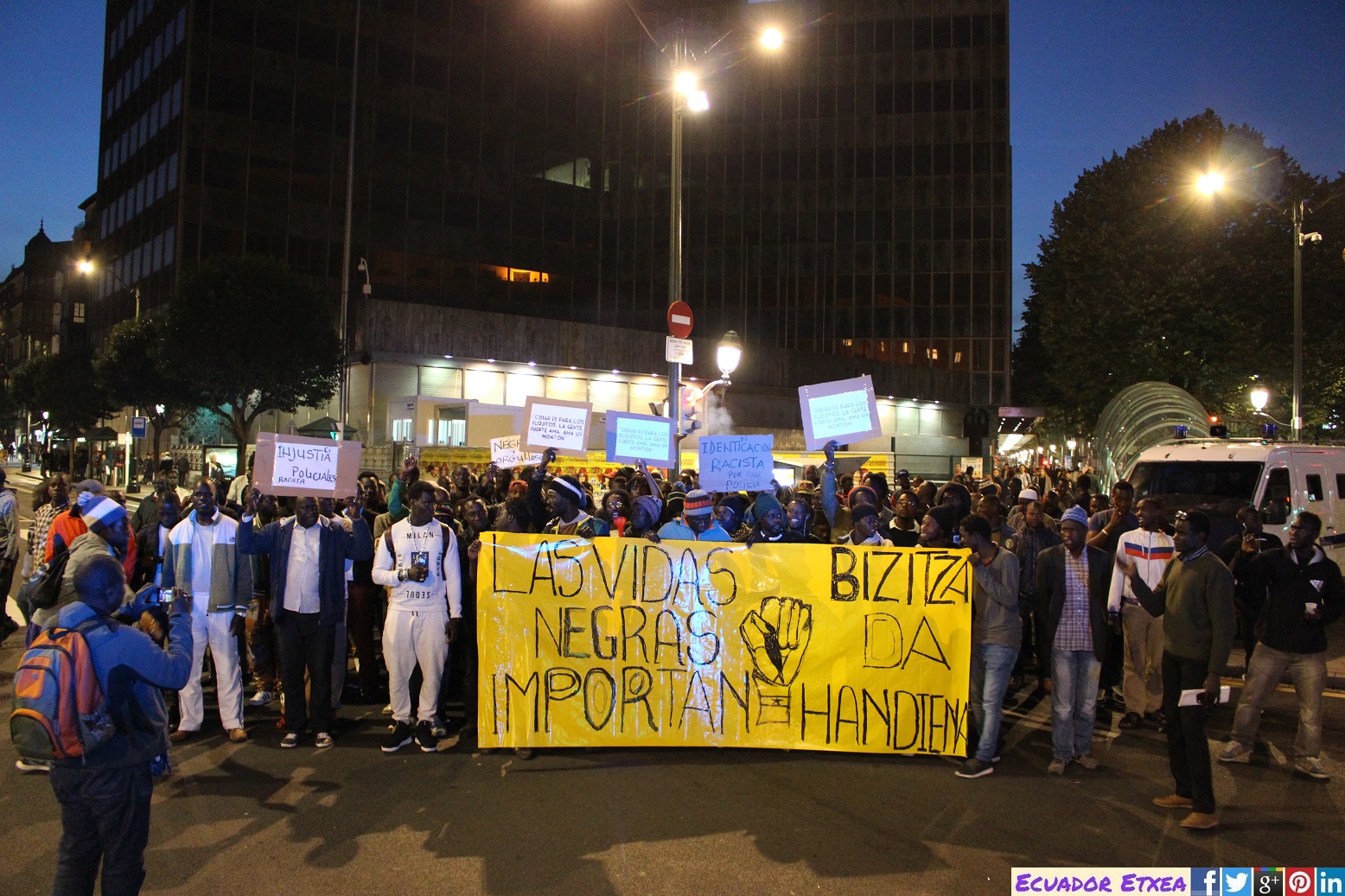 La asociación de Senegaleses de Bizkaia “Dahira Soublou Salam Wa Touba” ha movilizado a centenares de personas en Bilbao, quienes han marchado este martes 20 de marzo desde la plaza Moyua hasta la plaza del Teatro Arriaga, con el objetivo de recordar a Mame MBaye Ndiaye y Ousseynou Mbaye, vendedores ambulantes (manteros) fallecidos el pasado 15 de marzo en Lavapiés (Madrid).