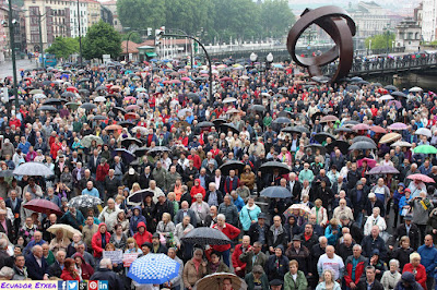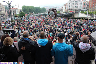 Tras la cuarta gran movilización realizada este sábado 26 de mayo en la que las diversas plataformas de Pensionistas de toda Euskal Herria colapsaron las calles de Bilbao movilizando a miles y miles de personas jubiladas, pensionistas y viudas con el apoyo de colectivos sociales, feministas, estudiantiles, de jóvenes trabajadoras precarias, sindicales, entre otras, han vuelto a retomar las concentraciones habituales frente al Ayuntamiento de Bilbao, y esta vez con la presencia de la Plataforma en Defensa de las Pensiones Públicas de San Sebastián de los Reyes (Madrid), quienes vinieron expresamente a Bilbao para hacerse escuchar hasta que el gobierno y las instituciones no acepten sus peticiones a favor de unas pensiones dignas así como un sistema público de pensiones.
