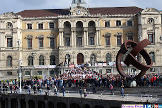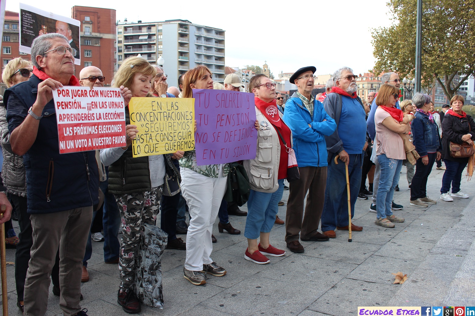 Tras la reunión mantenida en Vitoria-Gasteiz, en la que diferentes plataformas de pensionistas de Euskal Herria, acordaron convocar una nueva gran movilización para este próximo 15 de diciembre, a falta de conocer el lugar y la hora exacta, otro lunes más, cientos de pensionistas y jubilados, fieles a su cita, se han vuelto a reunir frente al Ayuntamiento de Bilbao, para insistir en que no les queda más remedio que continuar con esta batalla por su dignidad y la defensa de sus pensiones. Porque afirman que no pueden dejar “a medias” su lucha, ya que después del 2019 si no se blindan las pensiones, inevitablemente volverán al 0,25% de subida, por debajo del IPC, se implantará el Factor de Sostenibilidad y se verían seriamente perjudicados.
